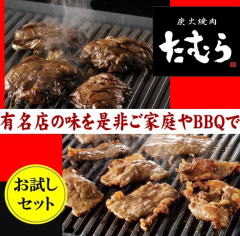 醤油ベースににんにく、生姜、白ワイン等で仕上げた特製のタレに漬け込んだカルビとハラミをそれぞれ3パックずつ計6パック(1.8kg)セットしたお試しパックです。